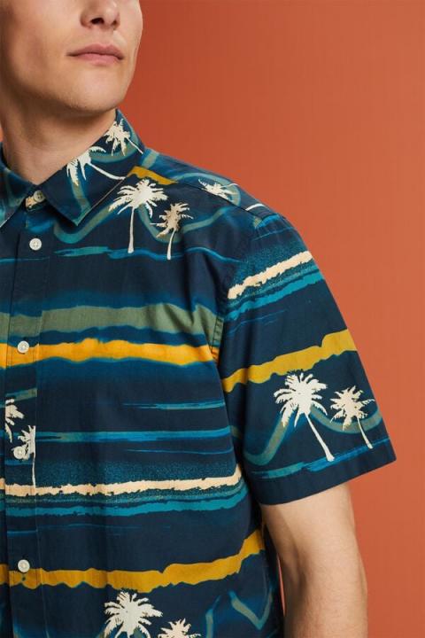 Mach dich bereit für einen zugleich unkomplizierten und stylischen Look! Das Kurzarmhemd aus nachhaltiger Baumwolle begeistert mit einem weichen Tragegefühl – den ganzen Tag lang.Weiche und leichte nachhaltige Baumwolle Musterdruck Umlegekragen kurze Ärmel Regular Fit