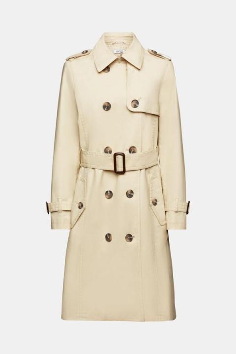 Der doppelreihige Baumwollmix-Trenchcoat hat ein breiteres Revers, einen Taillengürtel und Lederoptik-Details. Er ist maschinenwaschbar, feuchtigkeitsregulierend und wind- und wasserabweisend – für ein kühles, trockenes Tragegefühl bei jedem Wetter.Baumwollmix mit nachverfolgbarer Baumwolle Weiches, seidiges Innenfutter Zweireihig zu knöpfen Gürtelschlaufen und abnehmbarer Gürtel mit Schnalle Zwei Vordertaschen mit Dekoknopf Umlegekragen mit Hakenverschluss Charakteristische Esprit-Knöpfe Schulter- und Rückenkoller Geknöpfte Schulterklappen Verstellbare Ärmelenden mit Gürtelbändern