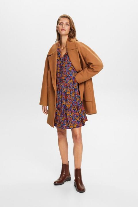 Das Minikleid aus nachhaltiger Viskose präsentiert sich mit einem aufregenden Allover-Muster und einer verspielten, femininen Silhouette.Leichter Webstoff aus LENZING™ECOVERO™ LENZING™ ECOVERO™: Viskosefasern, die aus nachhaltigem Holz und Zellstoff aus zertifizierten und kontrollierten Quellen gewonnen werden. Allover-Print V-Ausschnitt mit Umlegekragen Lange Ärmel mit Gummibund im Saum An der Taille gerafft Volantrock Weite A-Linie