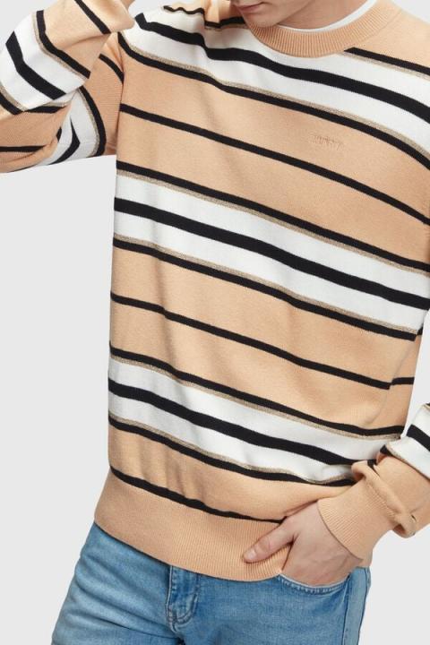 Dieser stylische Streifenpullover bringt Freude in deinen Kleiderschrank und lässt dich strahlen.Baumwoll-Mix mit Kaschmir Markantes Streifenmuster mit Glitzereffekt Rundhalsausschnitt Geripptes Abschlussbündchen Logostickerei an der Brust Regular Fit