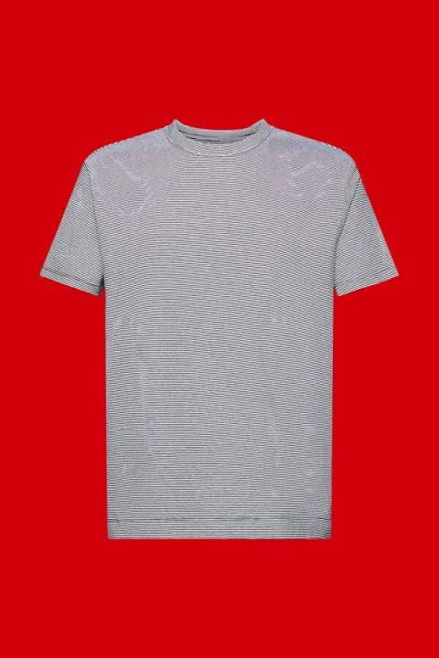 Dieses umweltbewusst produzierte T-Shirt ist aus einem luftigen Baumwolle-Leinen-Mix gefertigt und präsentiert sich mit klassischem Rundhalsausschnitt und bequemer Passform.Weicher Jersey aus nachhaltiger Baumwolle mit Leinen Feine Steifen allover Runder Ausschnitt Regular Fit